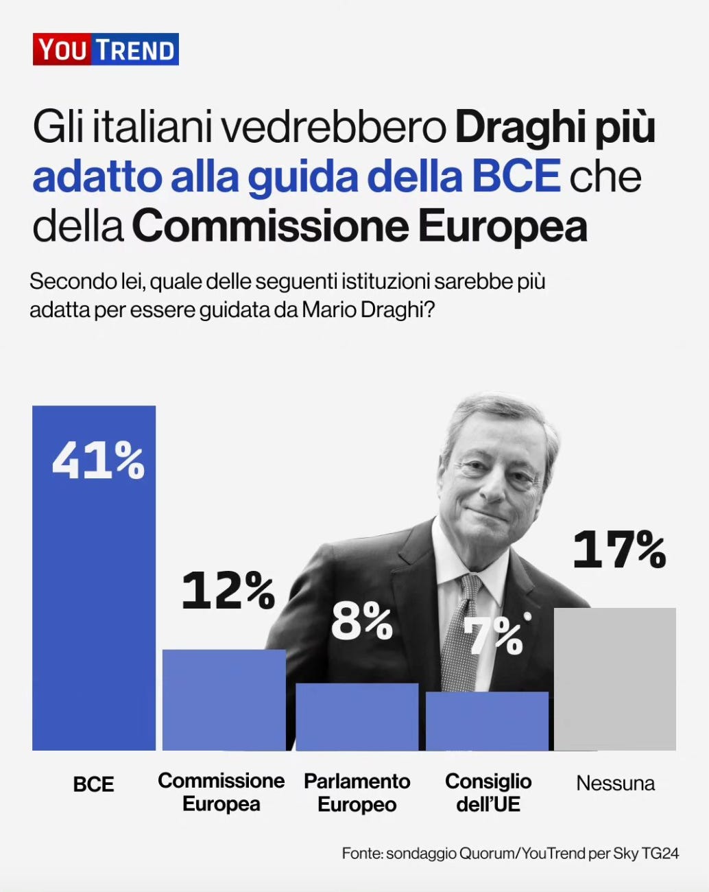 Con questo voglio dire che Draghi non dovrebbe ricoprire la carica di Presidente del Consiglio Europeo o della Commissione, nonostante ne abbia le credenziali in quanto ex primo ministro, perché non è mai stato candidato e mai lo sarà.