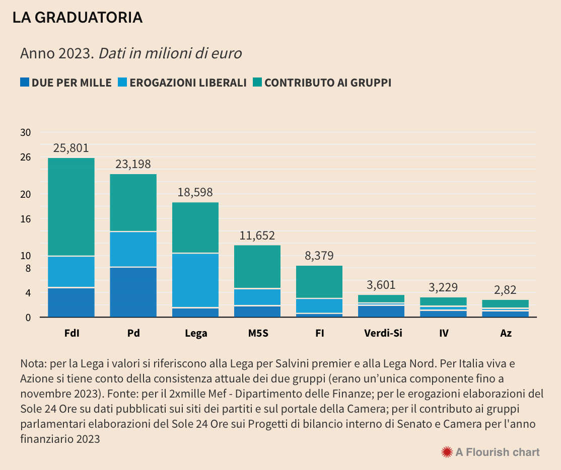 Tecnicamente, forme di finanziamento pubblico esistono ancora ma implicano una scelta privata. Infatti sia il Due per Mille che le erogazioni liberali sono soldi che in alternativa andrebbero allo Stato. Il risultato qual è? Partiti come Italia Viva ed Azione, che hanno un appeal su fasce più abbienti, ricevono donazioni maggiori in termini relativi. Il che ci porta all’assurdo: con questo sistema un partito che tecnicamente ha delle posizioni più vicine ai poverissimi, potrebbe non ricevere nulla.